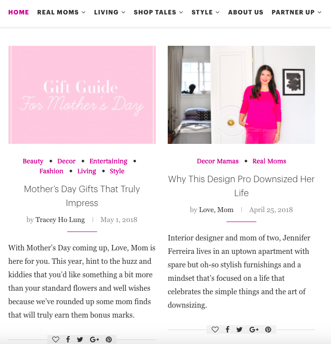 Interviewed career-minded (and stylish!) moms who share with Love, Mom the realities of raising kids in today’s world, plus what and who inspires them. Covering travel, fashion, beauty, decor and a whole lot of #momgoals, we delve into their closets, houses and favourite stores and product finds, to bring you much needed #mominspo.